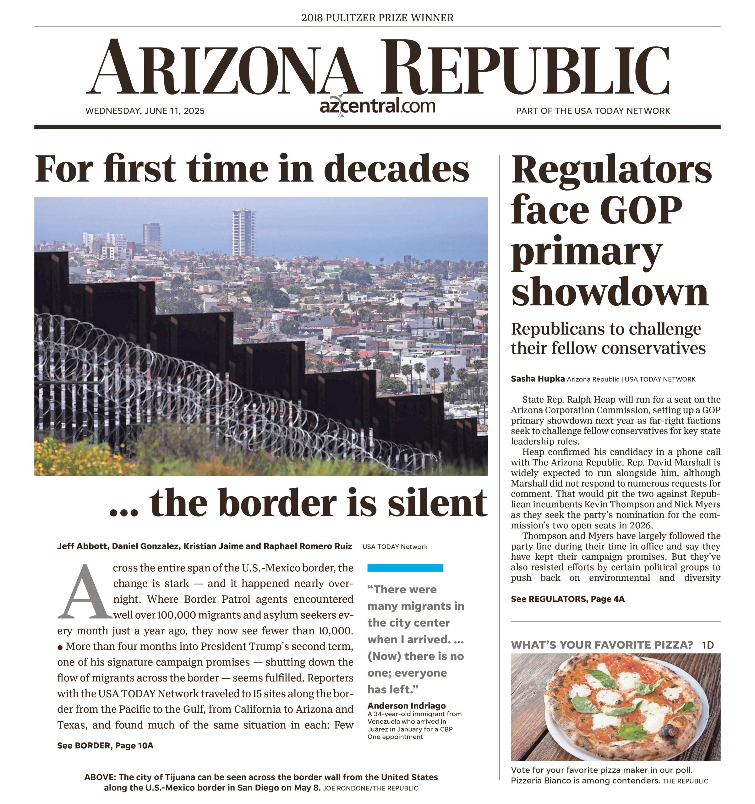 More than four months into President Trump’s second term, one of his signature campaign promises — shutting down the flow of migrants across the border — seems fulfilled. Reporters with the USA TODAY Network traveled to 15 sites along the border from the Pacific to the Gulf, from California to Arizona and Texas, and found much of the same situation in each: few migrants were attempting to cross; once bustling shelters for migrants were ghost towns; local officials expressed relief for no longer having to assist with the flood of people. […]